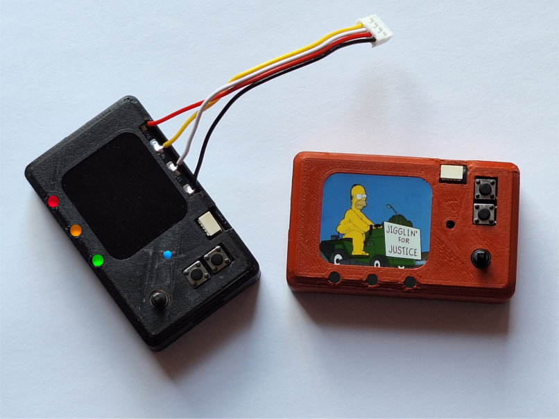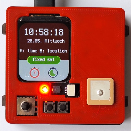 in CircuitPython programmiert, auf den Betrieb mit einem Lithium-Ionen Akku ausgelegt und in einem 3D-Druck Gehäuse untergebracht.