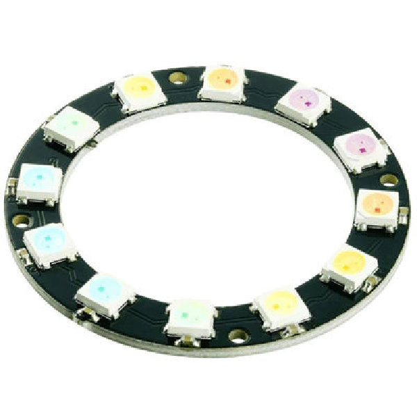 91 import neopixel 92 from rainbowio import colorwheel 93 94 num_pixels = 12 95 pixel_pin = board.GP20 96 pixels = neopixel.NeoPixel(pixel_pin, num_pixels, brightness=0.05, auto_write=False) 97 #strip1 = neopixel.NeoPixel(pixel_pin, num_pixels, brightness=0.15) 98 99 sine1 = [ # These are the pixels in order of animation - 12 pixels in total: 100 0, 1, 2, 3, 4, 5, 6, 7, 8, 9, 10, 11] 101 102 COLORS = ( 103 (155, 0, 0), 104 ( 0, 155, 0), 105 ( 0, 0, 155), 106 (155, 155, 0), 107 (155, 0, 155), 108 ( 0, 155, 155), 109 ) 110 111 def rainbow(speed): 112 for k in range (2): 113 for j in range(255): 114 for i in range(12): 115 pixel_index = (i * 256 // 12) + j 116 pixels[i] = colorwheel(pixel_index & 255) 117 pixels.show() 118 time.sleep(speed) 119 120 def colorwheel(pos): 121 if pos < 0 or pos > 255: 122 return (0, 0, 0, 0) 123 if pos < 85: 124 return (255 - pos * 3, pos * 3, 0, 0) 125 if pos < 170: 126 pos -= 85 127 return (0, 255 - pos * 3, pos * 3, 0) 128 pos -= 170 129 return (pos * 3, 0, 255 - pos * 3, 0) 130 131 def rainbow_cycle(wait): 132 for j in range(255): 133 for i in range(num_pixels): 134 rc_index = (i * 256 // num_pixels) + j 135 pixels[i] = colorwheel(rc_index & 255) 136 pixels.show() 137