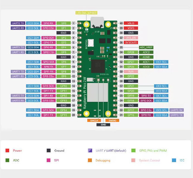 6  #I2C Pin SDA: GP 0 and SCL: GP1