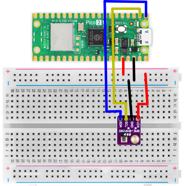 Die Abbildung zeigt die Schaltung mit dem Temperatursensor BME280 am Pico 2 W: