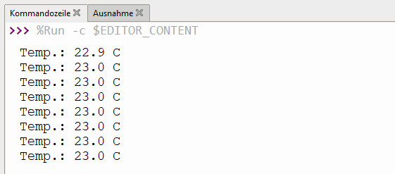 In der Kommandozeile der Thonny IDE werden z.B. folgende Temperaturwerte angezeigt: